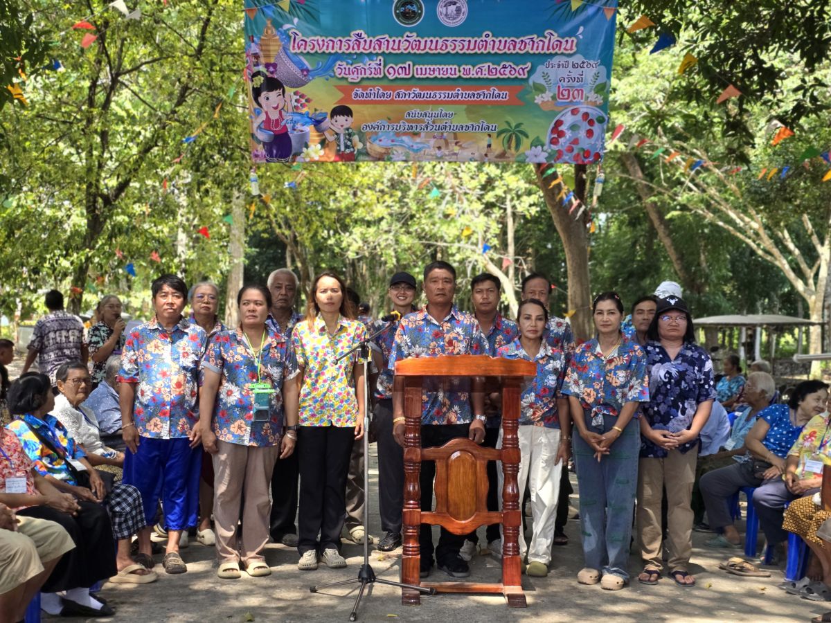 โครงการสืบสานวัฒนธรรมตำบลชากโดน ครั้งที่ 23 ประจำปี 2569 วันที่ 20 เมษายน 2569 [ 14:52 น. ] เข้าชม 2 ครั้ง พิมพ์ ภาพกิจกรรม โครงการสืบสานวัฒนธรรมตำบลชากโดน ครั้งที่ 23 ประจำปี 2569 องค์การบริหารส่วนตำบลชากโดน ร่วมกับสภาวัฒนธรรมตำบลชากโดน จัดโครงการสืบสานวัฒนธรรมตำบลชากโดน ครั้งที่ 23 ประจำปี 2569ณ วัดบุนนาค หมู่ 3 ตำบลชากโดน อำเภอแกลง จังหวัดระยองกิจกรรมดังนี้- ร่วมขบวนแห่หลวงพ่อโต รอบพื้นที่ตำบลชากโดน (หมู่ที่ 1 - 8)- กิจกรรมรดน้ำดำหัวผู้สูงอายุ- การแข่งขันปิดตาตีหม้อ- การแข่งขันสะบ้าทอย- การแข่งขันเปตองผู้สูงอายุ อัลบั้มภาพ