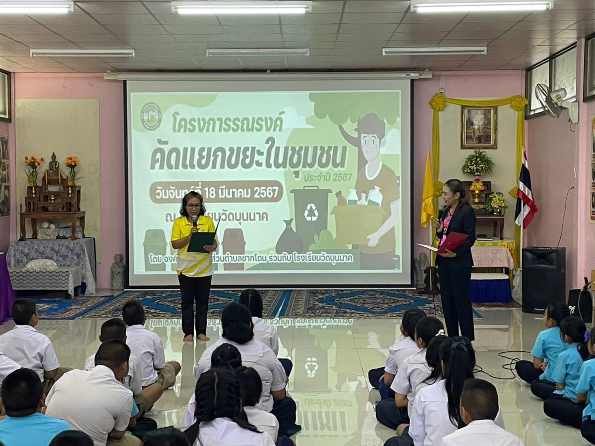 โครงการรณรงค์คัดแยกขยะในชุมชน ประจำปีงบประมาณ พ.ศ. 2567 วันที่ 19 มีนาคม 2567 [ 19:42 น. ] เข้าชม 23 ครั้ง พิมพ์ ภาพกิจกรรม โครงการรณรงค์คัดแยกขยะในชุมชน ประจำปีงบประมาณ พ.ศ. 2567 โครงการรณรงค์คัดแยกขยะในชุมชน ประจำปีงบประมาณ พ.ศ. 2567 วันที่ 18 มีนาคม 2567 กองสาธารณสุขและสิ่งแวดล้อม อบต.ชากโดน ได้ดำเนินการจัดโครงการรณรงค์คัดแยกขยะในชุมชน ประจำปีงบประมาณ พ.ศ. 2567 ณ โรงเรียนวัดบุนนาค เพื่อส่งเสริมให้เยาวชนและประชาชนมีความรู้ในการคัดแยกขยะได้อย่างถูกต้อง เพื่อลดปริมาณขยะในพื้นที่ตำบลชากโดน และสร้างจิตสำนึกแก่เยาวชนและประชาชนร่วมกันรักษาสิ่งแวดล้อม และ จัดกิจกรรม " MOI Waste Bank Week - มหาดไทยปักธงประกาศความสำเร็จ 1 องค์กรปกครองส่วนท้องถิ่น 1 อัลบั้มภาพ