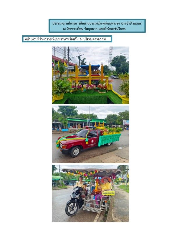 โครงการสืบสานประเพณีแห่เทียนพรรษา ประจำปีงบประมาณ 2567 วันที่ 25 กรกฎาคม 2567 [ 20:05 น. ] เข้าชม 22 ครั้ง พิมพ์ ภาพกิจกรรม โครงการสืบสานประเพณีแห่เทียนพรรษา ประจำปีงบประมาณ 2567 กองการศึกษา ศาสนาและวัฒนธรรม องค์การบริหารส่วนตำบลชากโดน ดำเนินการจัดโครงการสืบสานประเพณีแห่เทียนพรรษา ประจำปี 2567 ในวันศุกร์ที่ 19 กรกฎาคม 2567 นำโดยนายกจรูญ เที่ยงชัด นายกองค์การบริหารส่วนตำบลชากโดน พร้อมด้วยคณะผู้บริหาร พนักงานข้าราชการและพนักงานจ้าง กำนัน ผู้ใหญ่บ้าน ผู้ช่วยแพทย์ สารวัตร สตรีอาสา บทบาทสตรี รพ.สต. อสม. ชมรมผู้สูงอายุ และกลุ่มองค์กรต่างๆ ในตำบลชากโดน ร่วมถวายเทียนจำนำพรรษาที่วัดเขากะโดน, สำนักสงฆ์นรินทร์(วังล่าง) และวัดบุนนาค อัลบั้มภาพ