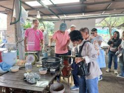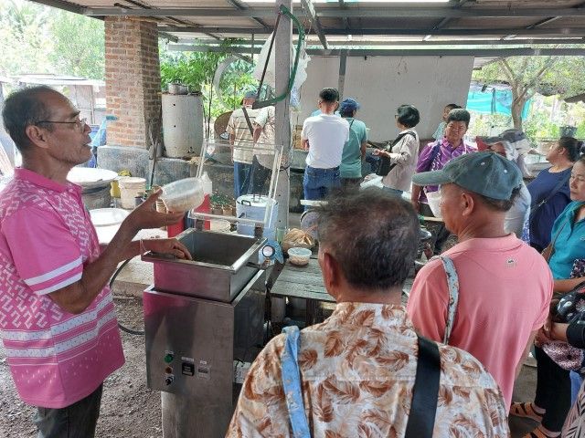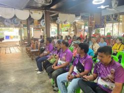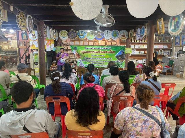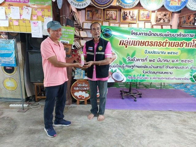 โครงการฝึกอบรมพัฒนาศักยภาพกลุ่มเกษตรกรตำบลชากโดน วันที่ 25 มีนาคม 2568 [ 18:16 น. ] เข้าชม 43 ครั้ง พิมพ์ ภาพกิจกรรม โครงการฝึกอบรมพัฒนาศักยภาพกลุ่มเกษตรกรตำบลชากโดน โครงการฝึกอบรมพัฒนาศักยภาพกลุ่มเกษตรกรตำบลชากโดน จัดขึ้นเมื่อในวันอังคารที่ 25 มีนาคม 2568 ณ ศูนย์เรียนรู้เศรษฐกิจพอเพียงบ้านสารภี ตำบลจอมปลวก อำเภอบางคนที จังหวัดสมุทรสงคราม โดยมีวัตถุประสงค์ ดังนี้1. เพื่อเพิ่มศักยภาพให้กับกลุ่มเกษตรกรในตำบลชากโดน ให้มีความรู้ในด้านจัดการสวนมะพร้าวให้มีคุณภาพ เรียนรู้การปลูก บำรุงต้น บำรุงลูก วิธีการเก็บผลผลิตในรูปแบบลูก และวิธีการเก็บน้ำตาลสดจากช่อดอกมะพร้าว เรียนรู้วิธีการป้องกันและกำจัดศัตรูพืช และการแปรรูปน้ำตาลมะพร้าว2. เพื่อให้เกษตรกรได้แลกเปลี่ยนข้อคิดเห็น และประสบการณ์ทางการเกษตร เกิดการเรียนรู้ผลผลิตทางการเกษตรให้เป็นผลิตภัณฑ์ที่หลากหลาย.3. เพื่อให้เกษตรกรนำความรู้และแนวคิดที่ได้รับไปปรับใช้ในสวนของตนให้ผลผลิตที่มีคุณภาพ รู้จักยืดอายุของผลผลิตทางการเกษตร เพื่อให้เกิดประโยชน์ในทางการค้าขายต่อไป4. เพื่อให้เกษตรกรสามารถนำความรู้ไปถ่ายทอดและเผยแพร่ไปยังเกษตรกรและผู้ที่เกี่ยวข้องได้ อัลบั้มภาพ