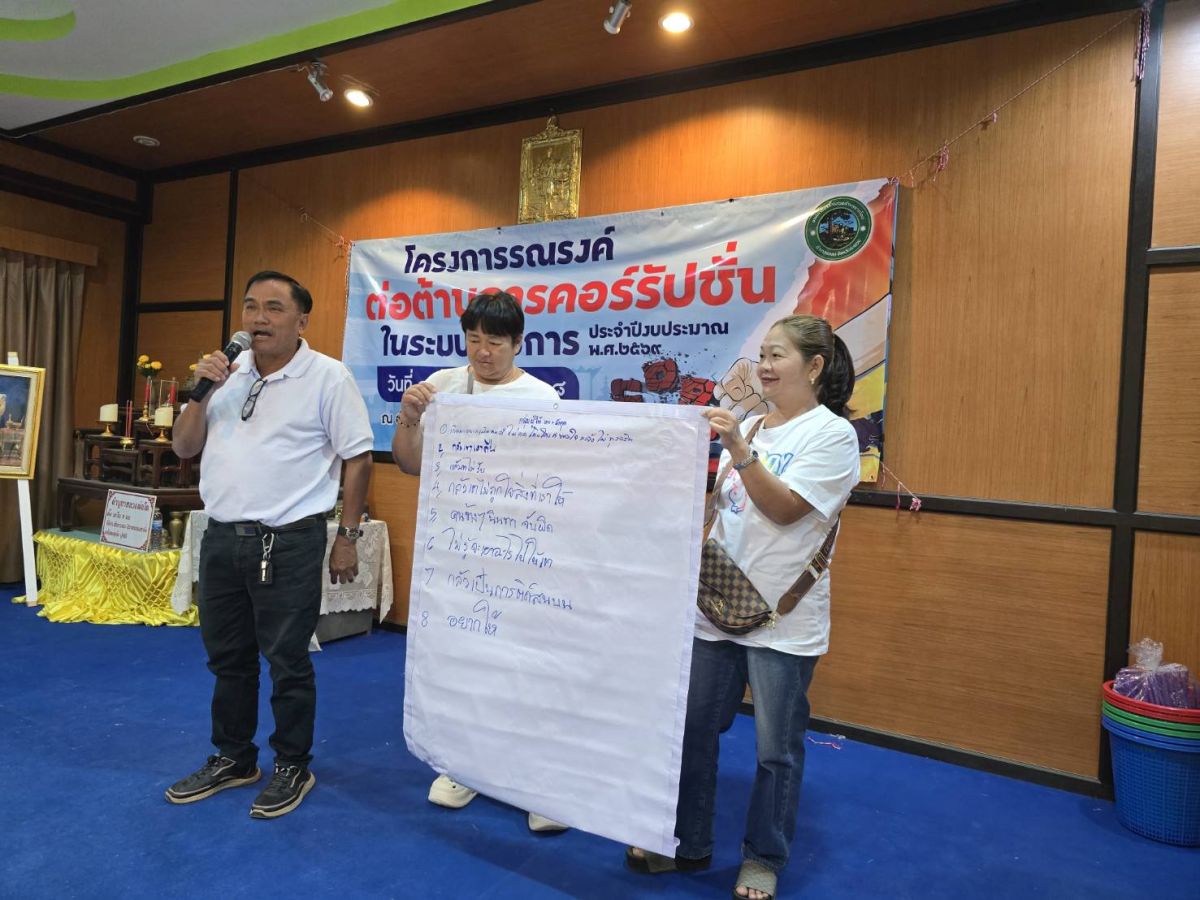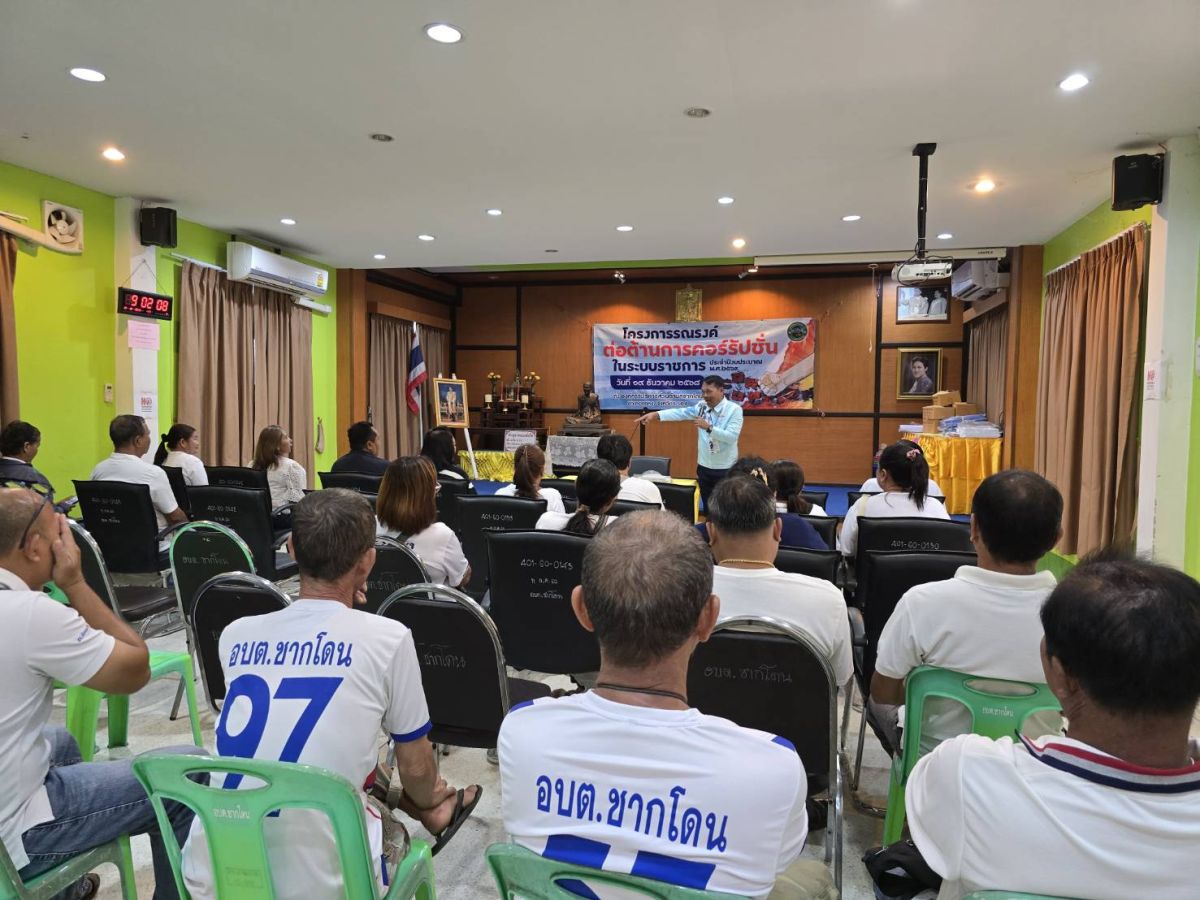 โครงการรณรงค์ต่อต้านคอรัปชั่นในระบบราชการ ประจำปี 2569 วันที่ 19 ธันวาคม 2568 [ 14:08 น. ] เข้าชม 34 ครั้ง พิมพ์ ภาพกิจกรรม โครงการรณรงค์ต่อต้านคอรัปชั่นในระบบราชการ ประจำปี 2569 สำนักปลัด จัดทำโครงการรณรงค์ต่อต้านคอรัปชั่นในระบบราชการ ประจำปี 2569 ในวันที่ 19 ธันวาคม 2568 ให้กับประชาชนในตำบลชากโดน จำนวน 40 คน ณ ห้องประชุมองค์การบริหารส่วนตำบลชากโดน โดยมีวัตถุประสงค์ ดังนี้๑. เพื่อให้ผู้นำชุมชน และประชาชนมีส่วนร่วมและให้ความร่วมมือรณรงค์ต่อต้านการคอรัปชั่นใน ระบบราชการ เพื่อปราบปรามการทุจริตในระบบราชการ๒. เพื่อให้ผู้นำชุมชน และประชาชน มีความรู้ ความเข้าใจที่ถูกต้องเกี่ยวกับการทุจริตคอรัปชั่น๓. เพื่อป้องกันและลดปัญหาในการทุจริตคอรัปชั่นในระบบราชการ อัลบั้มภาพ