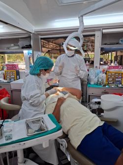 โครงการทันตกรรมเคลื่อนที่ ประจำปีงบประมาณ 2568 วันที่ 13 ธันวาคม 2567 [ 11:06 น. ] เข้าชม 11 ครั้ง พิมพ์ ภาพกิจกรรม โครงการทันตกรรมเคลื่อนที่ ประจำปีงบประมาณ 2568 กองสาธารณสุขและสิ่งแวดล้อม อบต.ชากโดน จัดกิจกรรม “โครงการทันตกรรมเคลื่อนที่ ประจำปีงบประมาณ 2568” เมื่อวันที่ 13 ธันวาคม 2567 โดยมุ่งเน้นการดูแลสุขภาพเชิงรุกแก่พี่น้องชาวตำบลชากโดน ภายใต้การสนับสนุนงบประมาณจากกองทุนหลักประกันสุขภาพองค์การบริหารส่วนตำบลชากโดน การจำทำโครงการในครั้งนี้มุ่งหวังให้ประชาชนตระหนักถึงการป้องกันโรคในช่องปาก พร้อมให้บริการตรวจเช็กและดูแลเพื่อยับยั้งการลุกลามของปัญหาเหงือกและฟัน ช่วยให้คนในชุมชนมีสุขภาพช่องปากที่ดีและมีฟันที่แข็งแรง อัลบั้มภาพ